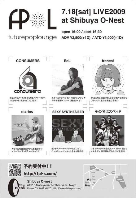 昨年に引き続き、今年も渋谷O-nestで「フューチャーポップ☆ラウンジ」が開催されます。今回、ゲストとしてmarinoが参加!先日、彼女のライブを見る機会がありましたが、「フレイバー」などの中田ヤスタカプロデュース曲を、ダンサー2名を従えてかわいい振り付きで踊ってくれました。とても完成度が高いパフォーマンスだったと思います。今度のライブでも期待できるのではないでしょうか・・・?
