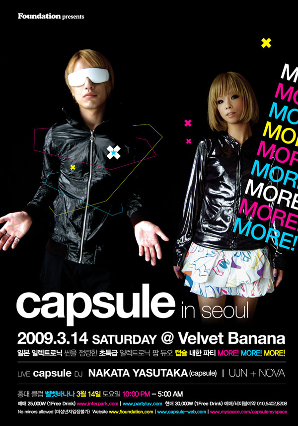 capsuleの、3月14日(土)韓国公演のWebフライヤー及び詳細が、主催のFoundationオフィシャルサイトに掲載されていました。