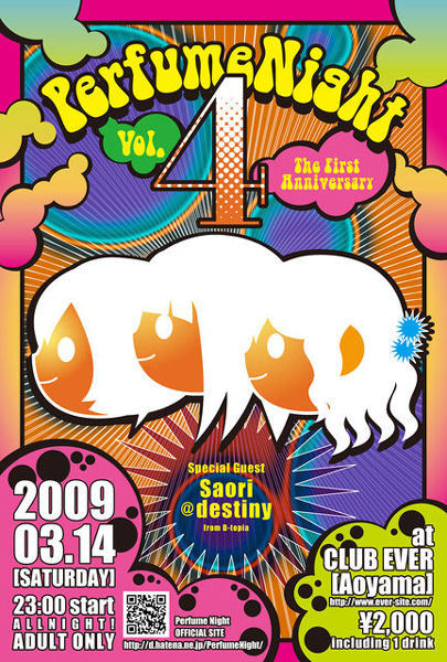 前回遊びに行きましたが、とても楽しかったです!Perfumeの曲が数多く流れるのはもちろん、capsuleやMEGなど、中田ヤスタカの曲も多くかかってました。会場のEVERは、フロアで踊るのはもちろん、ラウンジスペースが広いのと椅子が多いので、とても過ごしやすいと思います。スペシャルゲストのSaori@destinyも気になるところですね!